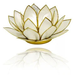 Teelichthalter - Capiz Muschel - Lotus Licht - Beige/Gold mit Gold - ca. 13,5x5,5 cm